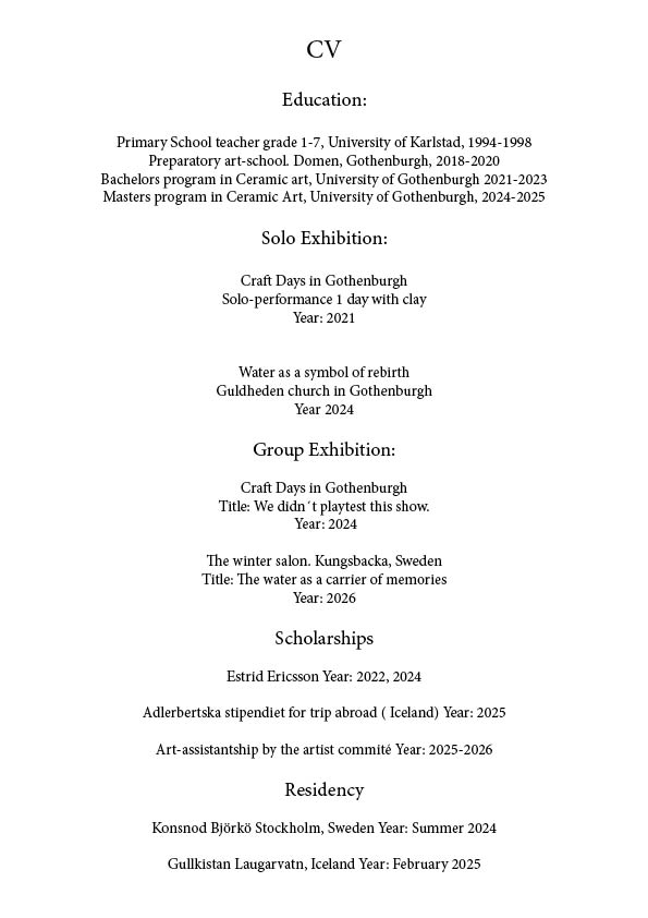 I strive to create a strong physical presence in my ceramic works where traces of my body are often visible. In this intimate dialogue that arises between me and the clay, I allow the clay’s own agents to take center stage, making each work unique with surprising forms and expressions.